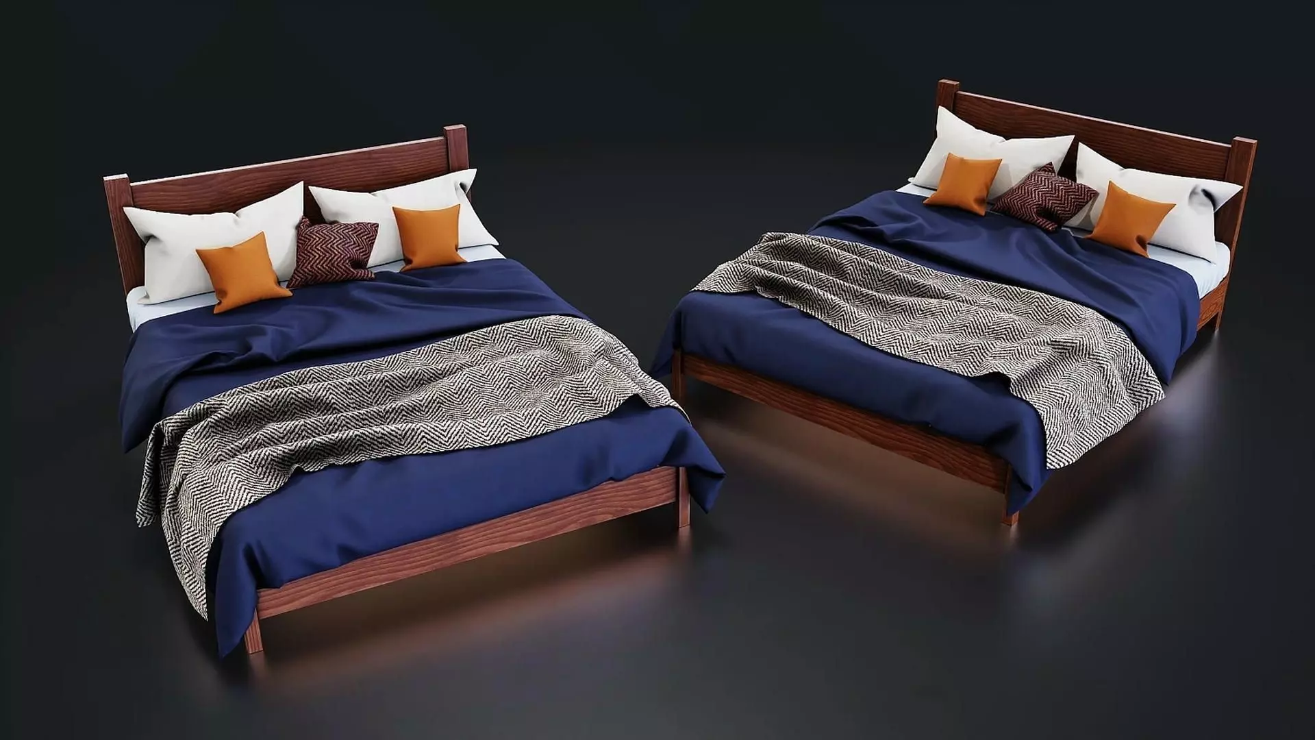 Modern Wooden Bed Set Low-poly 3D model