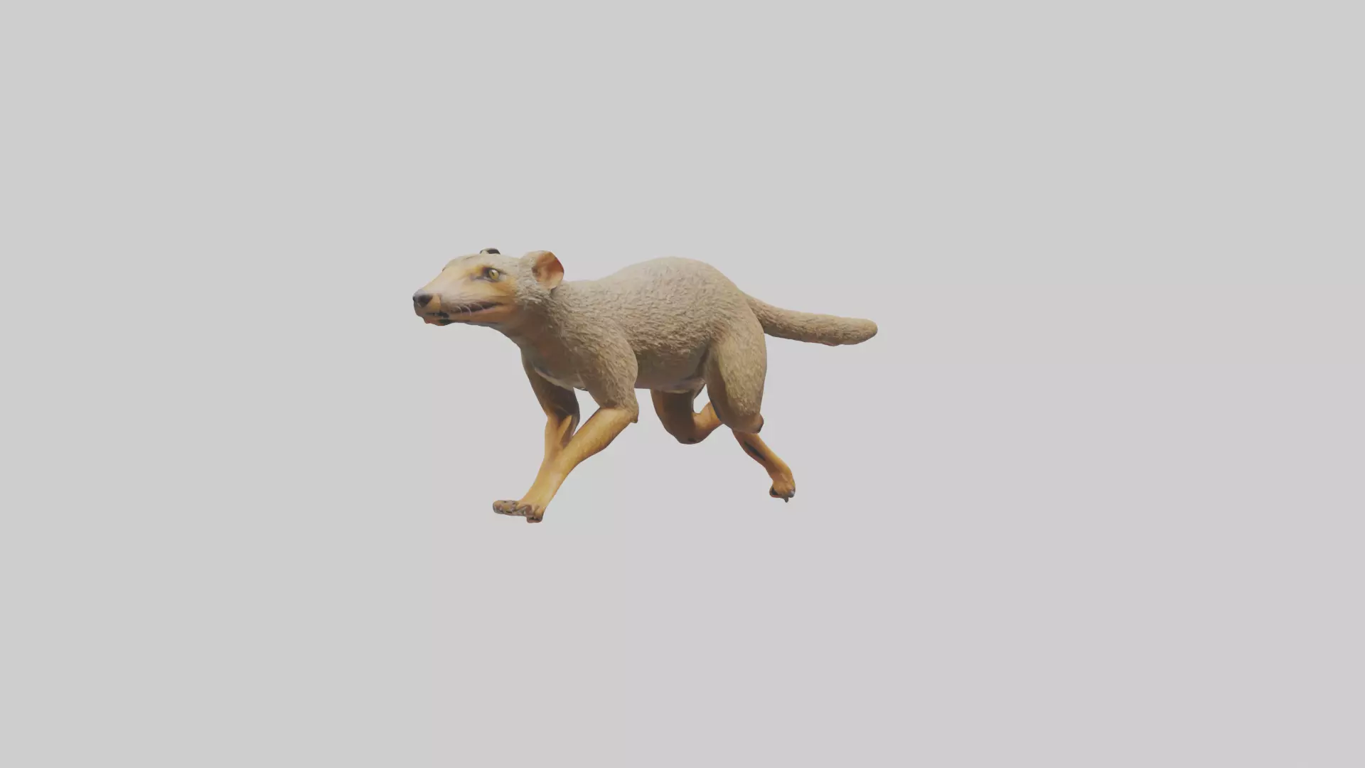 Detailed 3D model of a Mongoose running. This model accurately depicts a mongoose in a running pose, showcasing its agile and swift movement. The slender body, short legs, and often bushy tail are clearly visible, capturing the dynamic nature of this animal. Perfect for wildlife visualizations, animal behavior studies, educational content about small carnivores, or animations demonstrating animal locomotion. The model may include motion blur effects or a dynamic pose to emphasize the running action. It is provided in multiple formats: FBX, OBJ, STL, GLB, USDZ, and BLEND, ensuring compatibility with a wide range of 3D software and platforms.