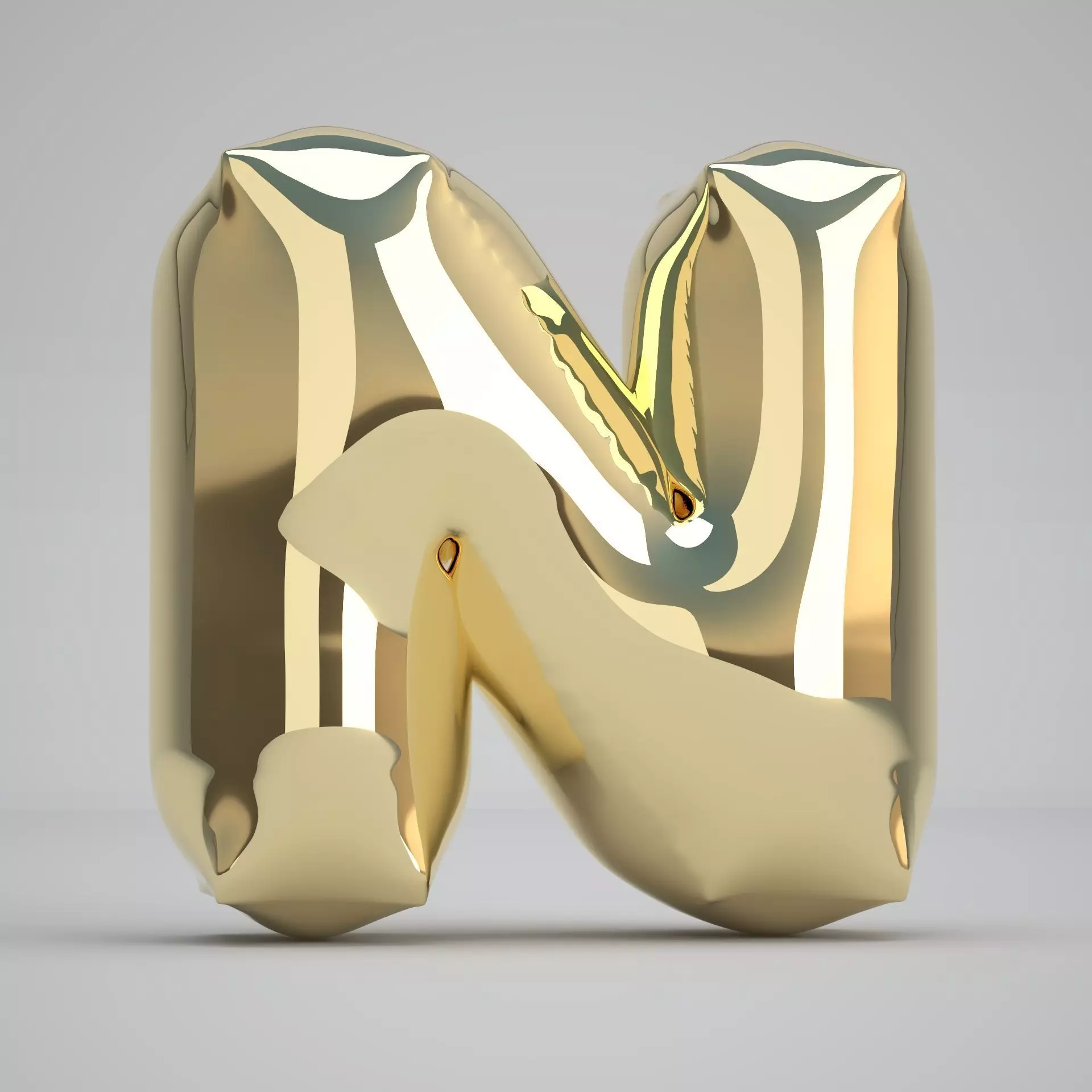 Realistic 3D Model OF Balloon N Alphabet Gold