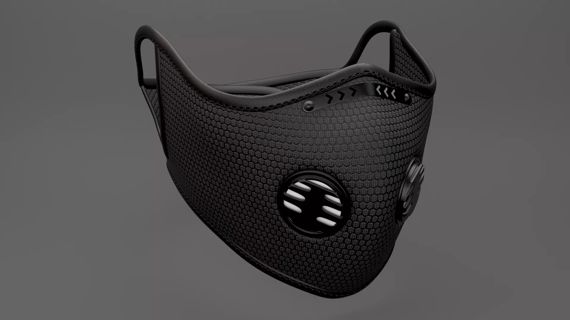 It has all details you’ll expect on a complete model that has every single element of a real mask present with phisycal 3D thickness: It has replaceble dust filters, discharge valves, adjustable velcro strap, nose clip and a blank label so you can put your own logo there .