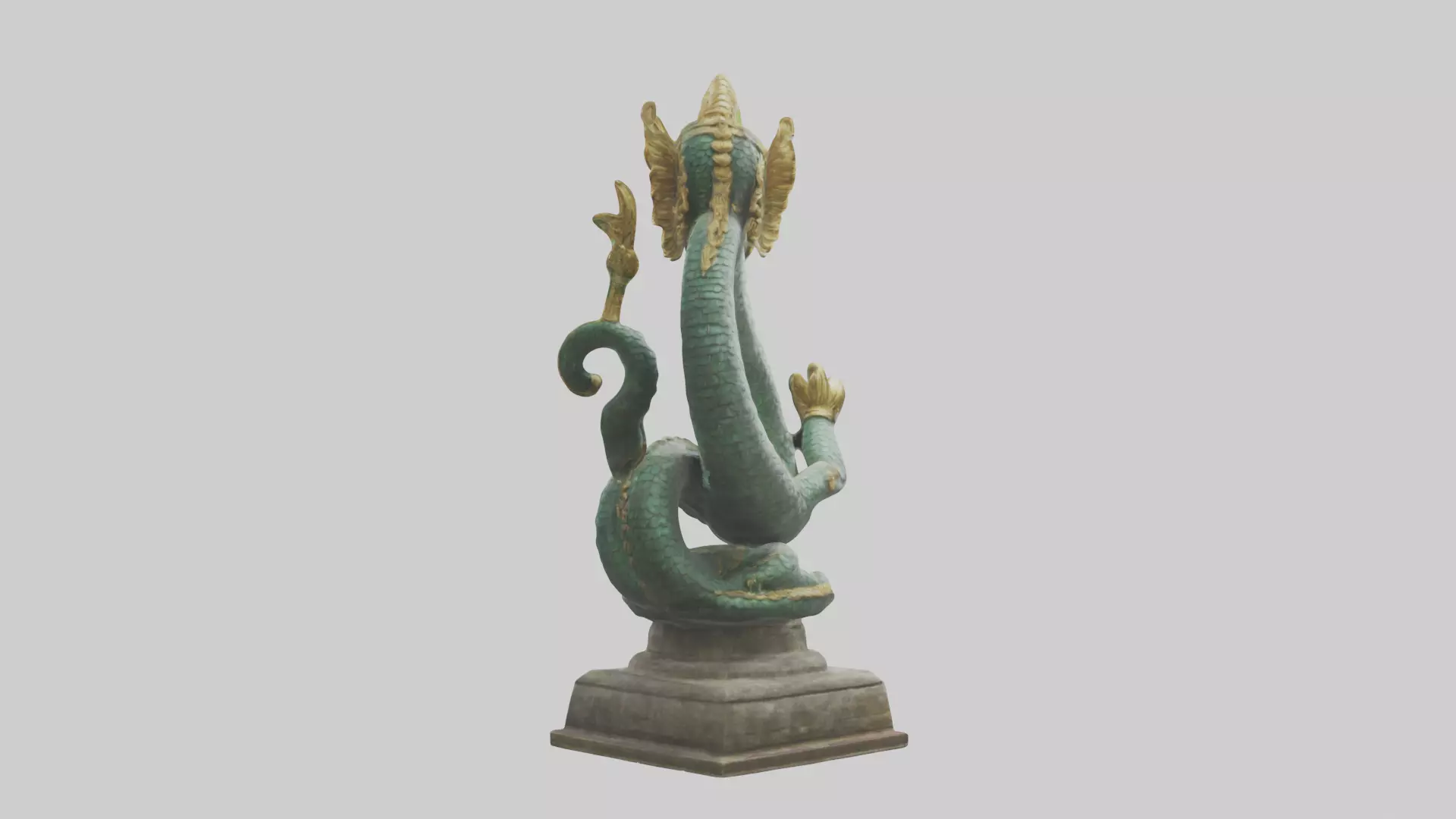 Detailed 3D model of a Naga statue. This mythical serpentine creature from Hindu and Buddhist mythology is perfect for fantasy games, cultural visualizations, decorative purposes, or mythological scenes. The model often features a combination of human and snake-like features, intricate scales, and ornate details. It is provided in multiple formats: FBX, OBJ, STL, GLB, USDZ, and BLEND, ensuring compatibility with a wide range of 3D software and platforms.
