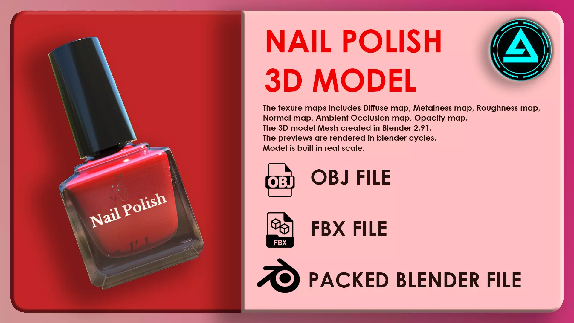 High quality Nail Polish low-poly 3D model for your PBR game engines, renders, FPS projects, TPS projects, Advertisent projects and interior projects etc.