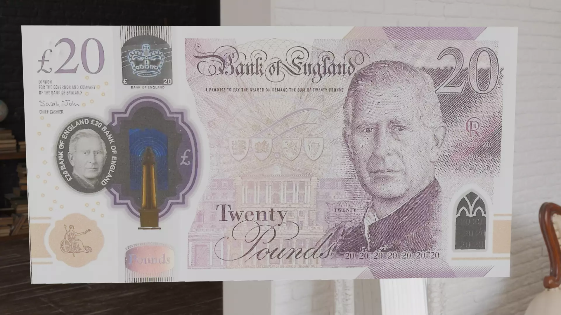 Introducing the NEW £20 Pound Note featuring the King of England, 2024 Edition! This highly detailed 3D model of the British Pound Note is perfect for anyone looking to enhance their projects with realistic currency visuals.