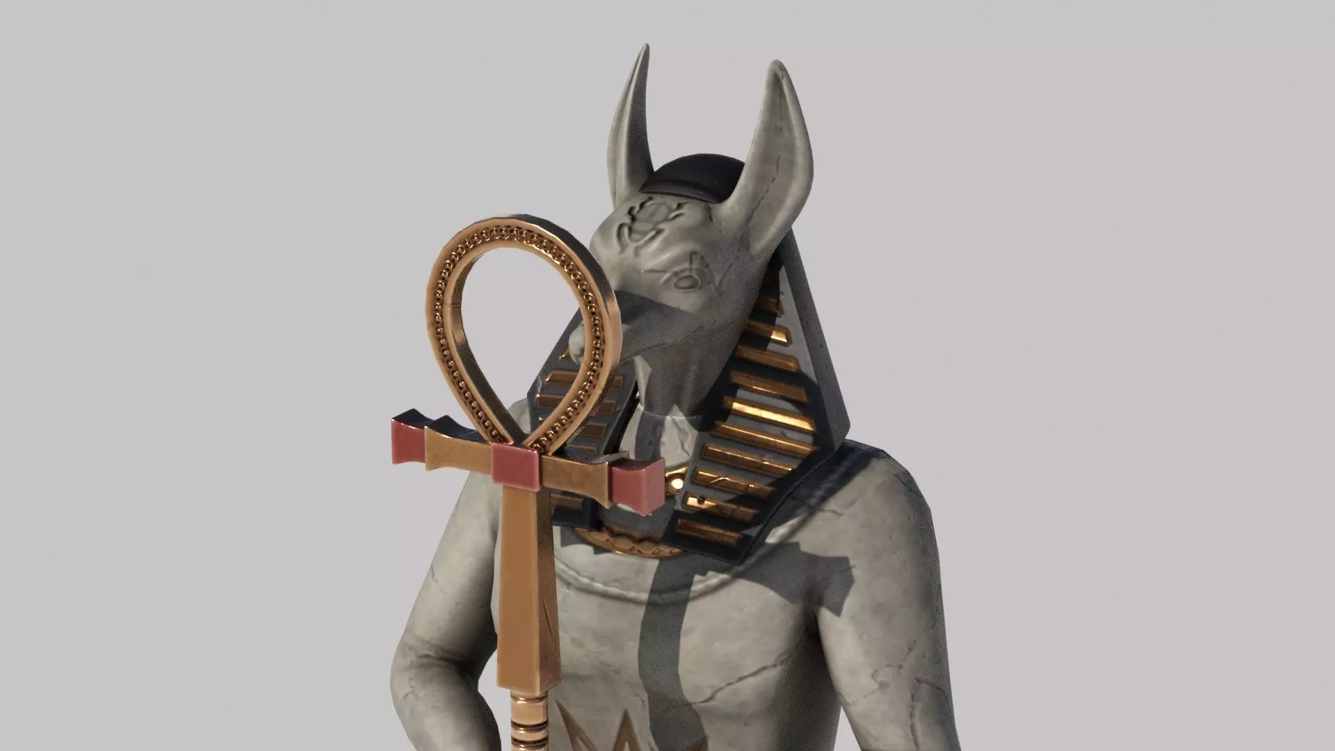 Fictional ancient Egyptian styled miniature sculpture (Ushabti) with metal staff, three adjustable saff heads and demountable jackal head. Made to be used by a necromancer, pharaoh or death priest.