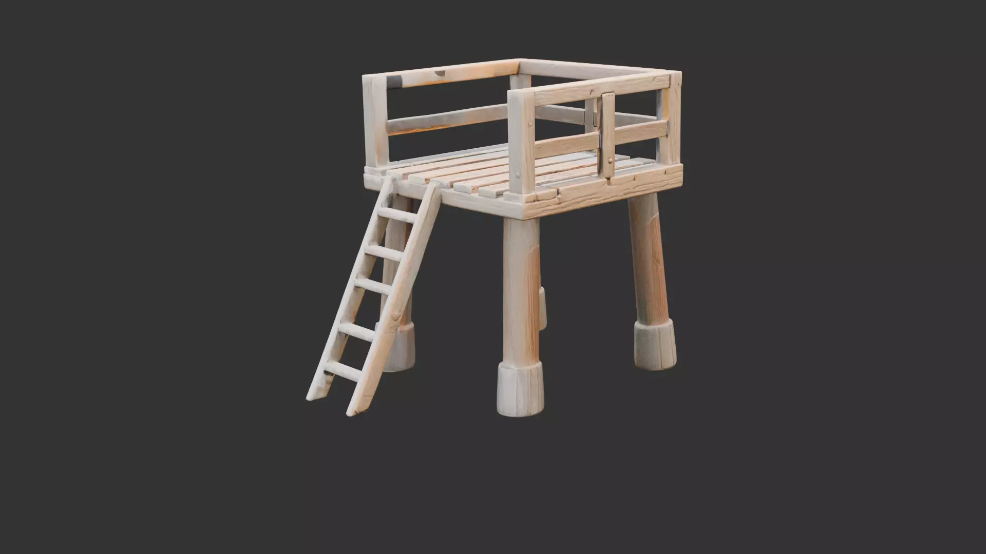 A small wooden observation platform raised on stilts, accessed by a ladder. Useful for strategic elevation in tabletop battles.