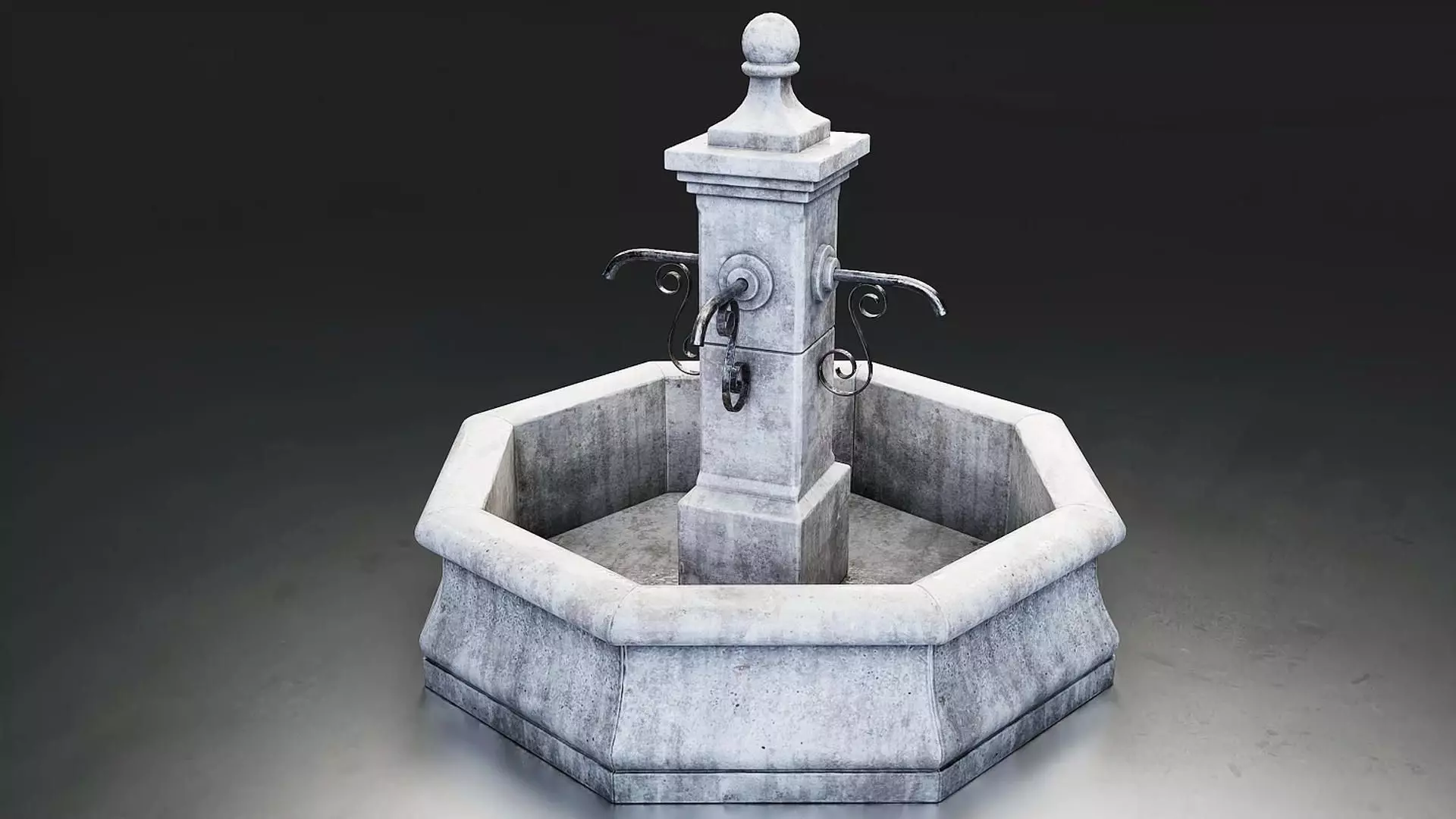 Octagonal Stone Fountain Low-poly 3D model