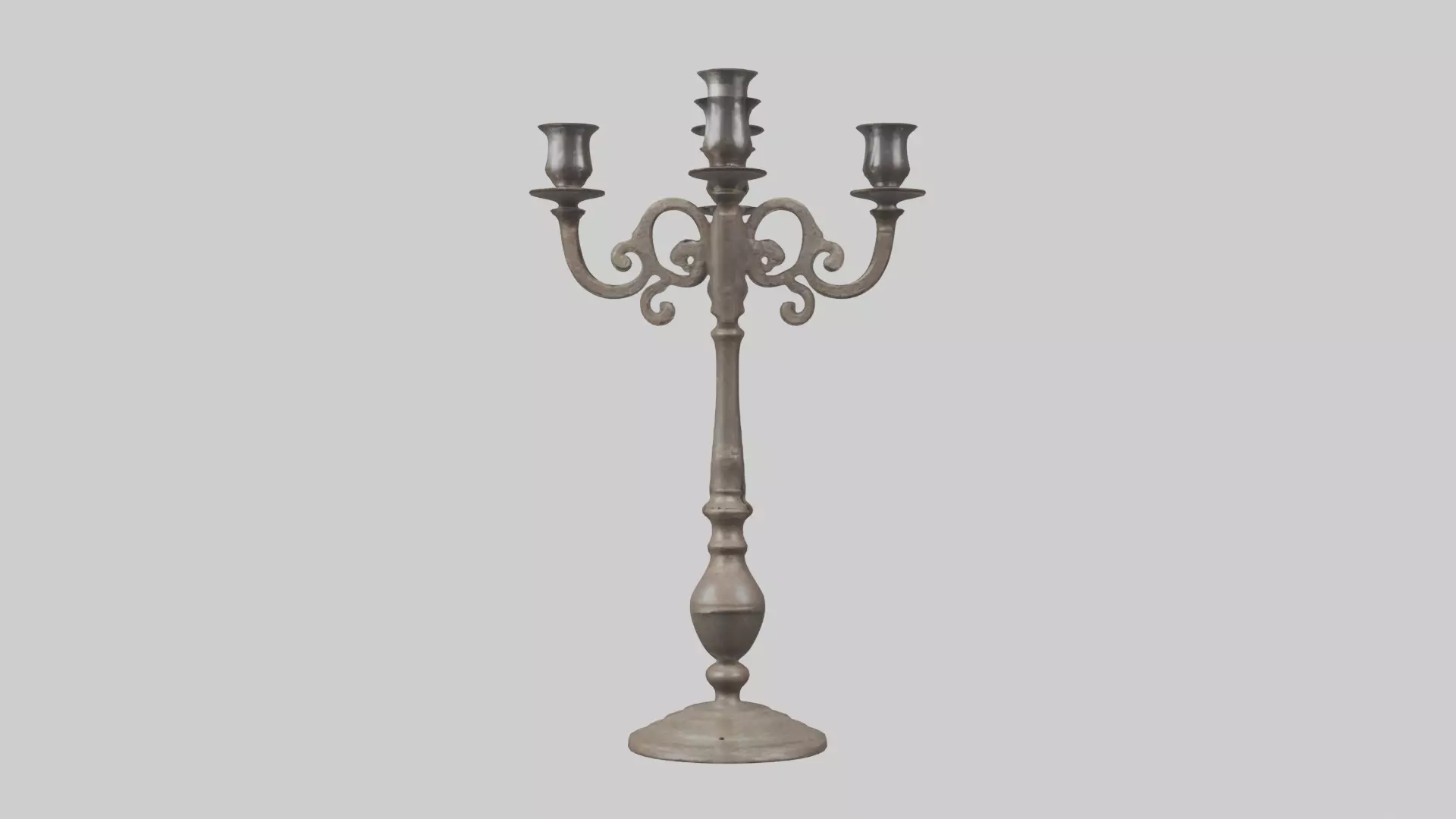 This 3D model features an intricately designed old candleholder, showcasing detailed craftsmanship with a vintage, antique look. The model highlights the aged metal texture, with wear marks and a weathered patina that gives it an authentic, timeworn appearance. Ideal for historical settings, period-themed designs, or vintage-inspired projects, this model offers a realistic representation of a classic candleholder, capturing the charm and elegance of a bygone era.