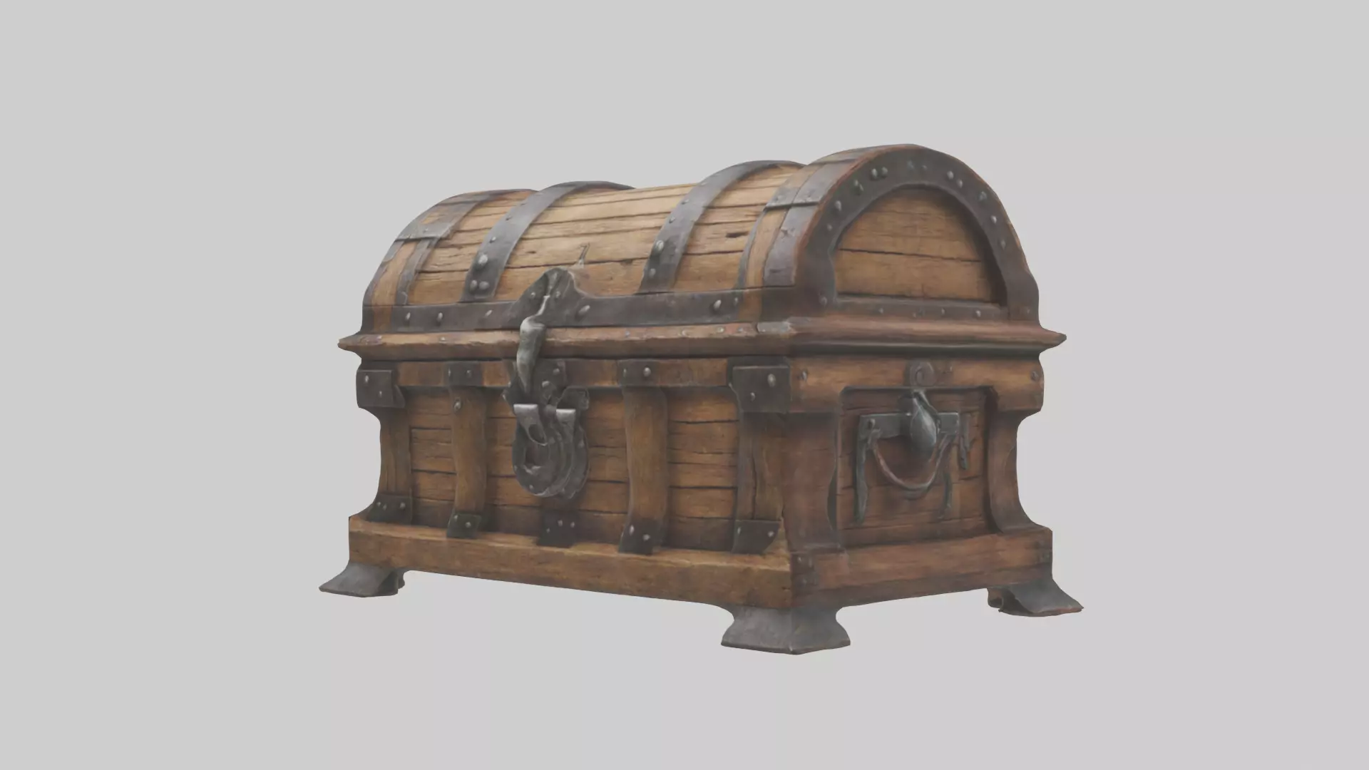 The Old Chest Model 3D design features a detailed and realistic representation of a vintage wooden chest. The model highlights the weathered texture of aged wood, with visible wear, cracks, and metal accents, giving it an antique, timeworn appearance. Ideal for use in historical, adventure, or fantasy-themed visualizations and environments. Available in OBJ, FBX, STL, GLB, and BLEND formats.