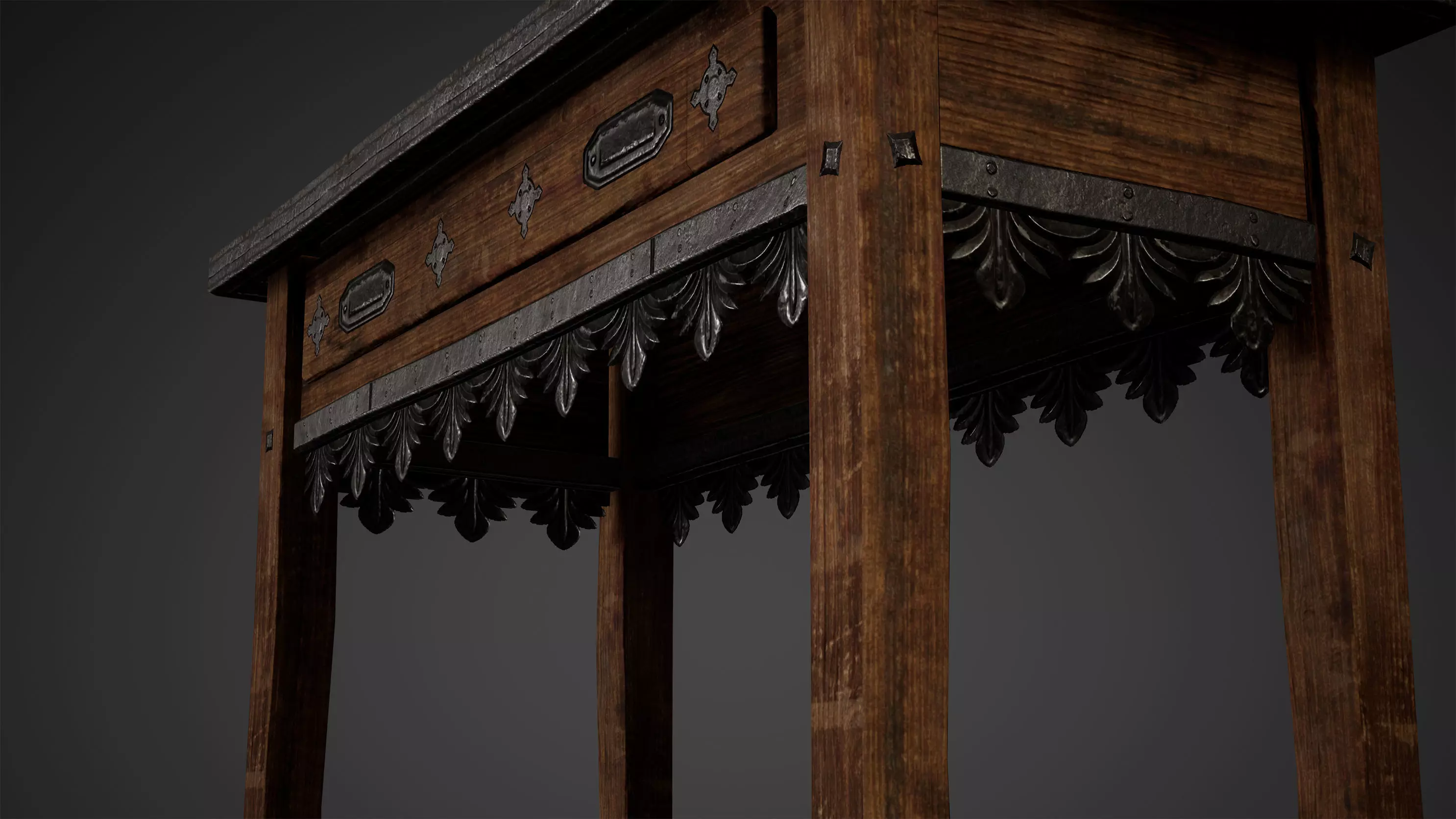 Old Wooden Antique Table Low Poly Game Ready Low-poly 3D model