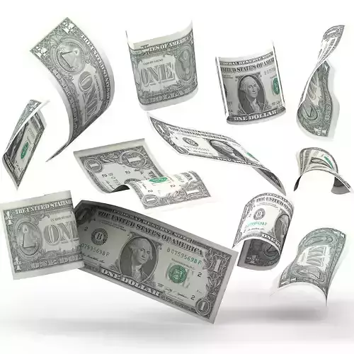 One Dollar Bill FlyingThis fully textured 3D model of a flying one dollar bill, featuring several bills at different angles and positions, is suitable for any visual product, adding realism to your project.The model was created in Cinema 4D R25. The HDRIs are compatible with any program, as are the materials, which are also compatible with other programs, editable, and rendered within the same program. It is backward and forward compatible with Cinema R26.