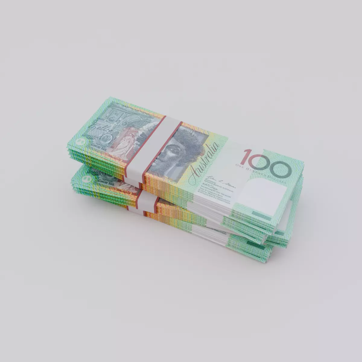 This realistic 3D model of the 100 Australian Dollar (AUD) banknote is a highly detailed digital representation of Australia's highest-denomination polymer note, issued by the Reserve Bank of Australia. It features Dame Nellie Melba (renowned opera singer) and Sir John Monash (respected civil engineer and military leader), symbolizing Australia's cultural and engineering excellence.