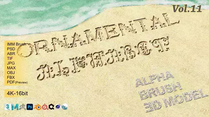 **- Ornamental Alphabet Brush + Alpha + 3D model vol 11 .