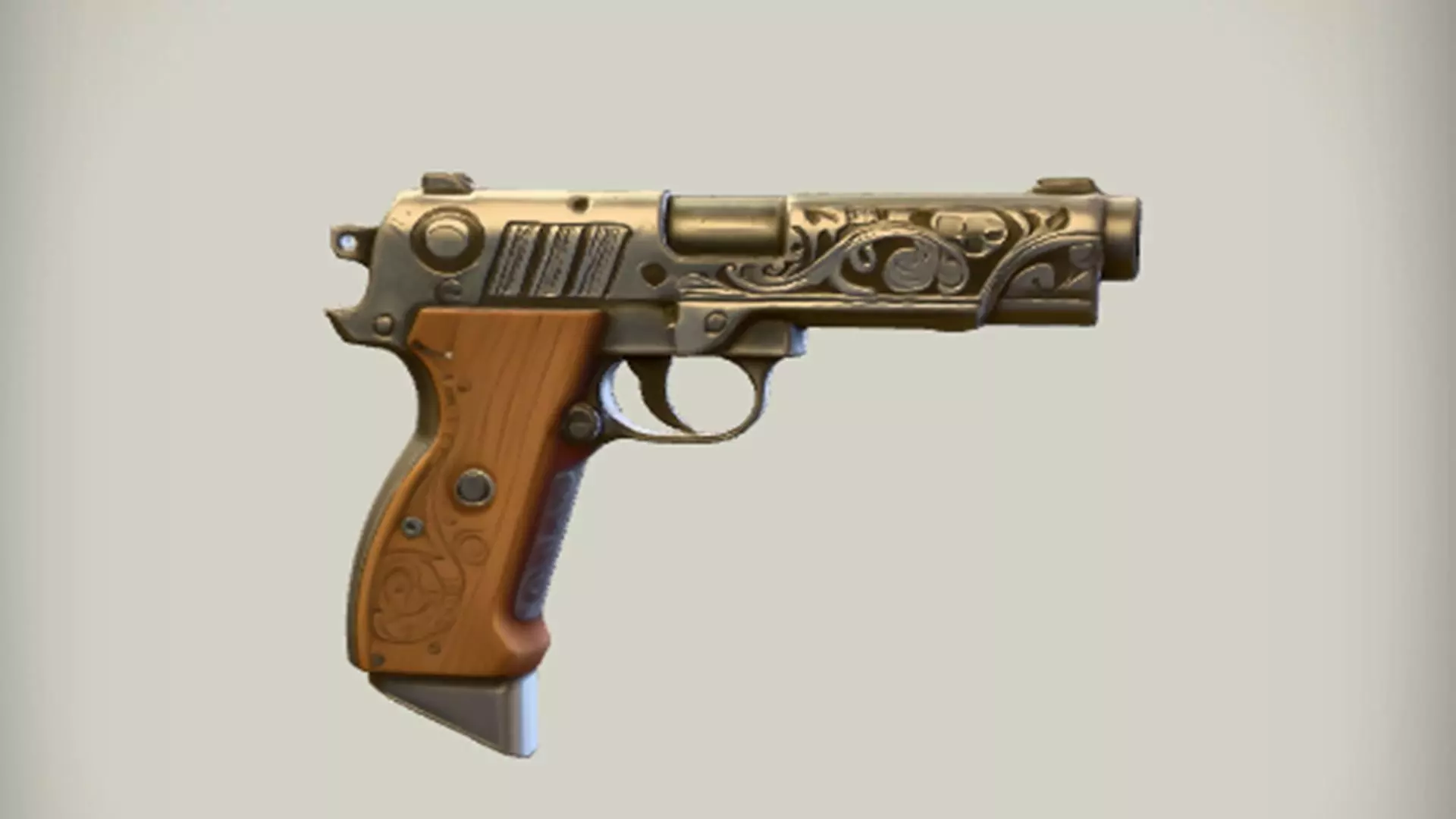 ornate handgun with wood grip 3D model