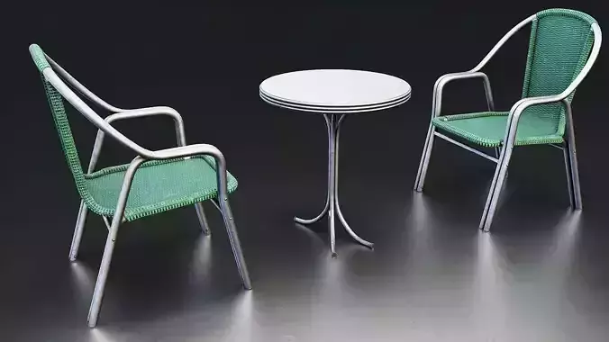 Outdoor Bistro Table and Chair Set Low-poly 3D model