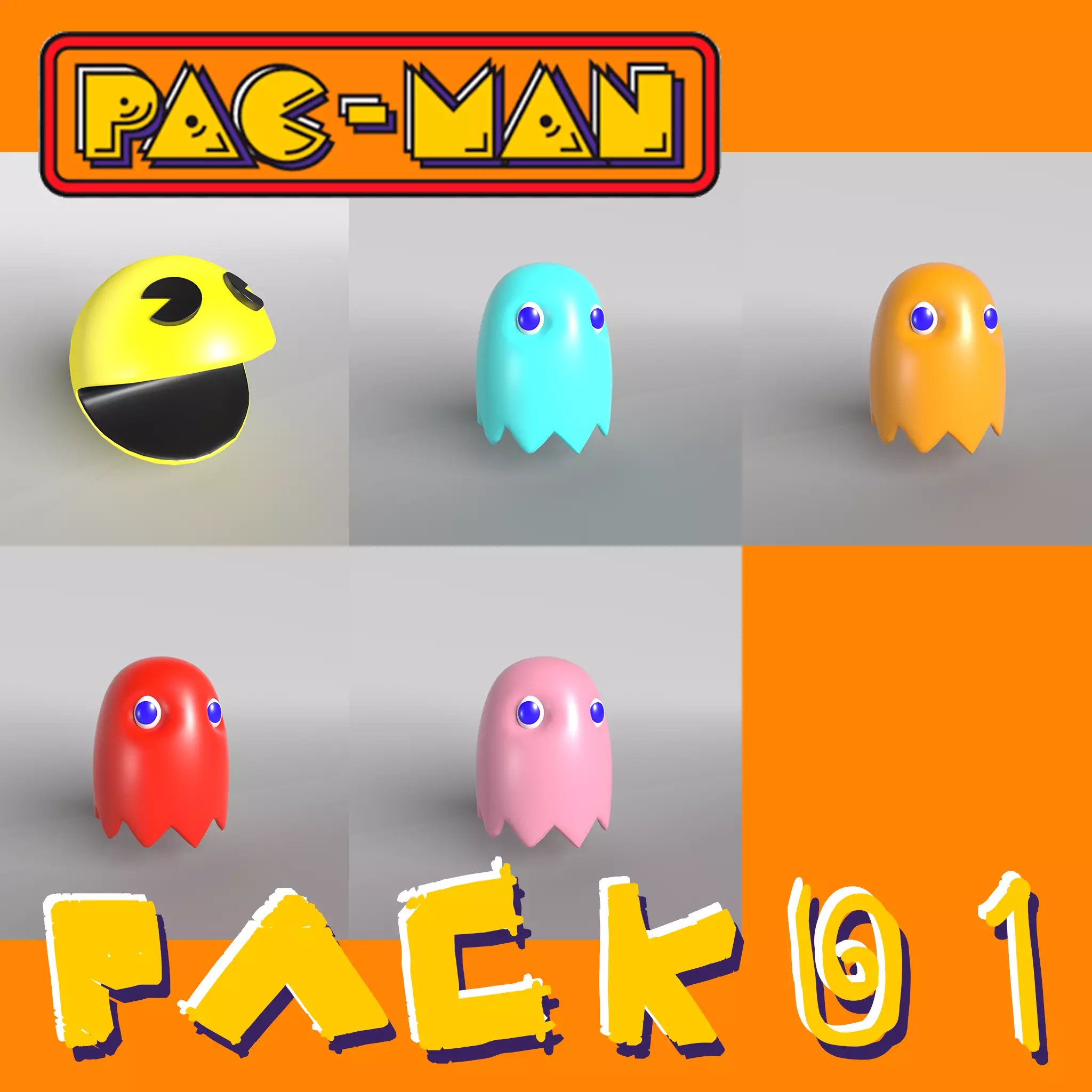 Pac Man Pack 01 Low-poly 3D model