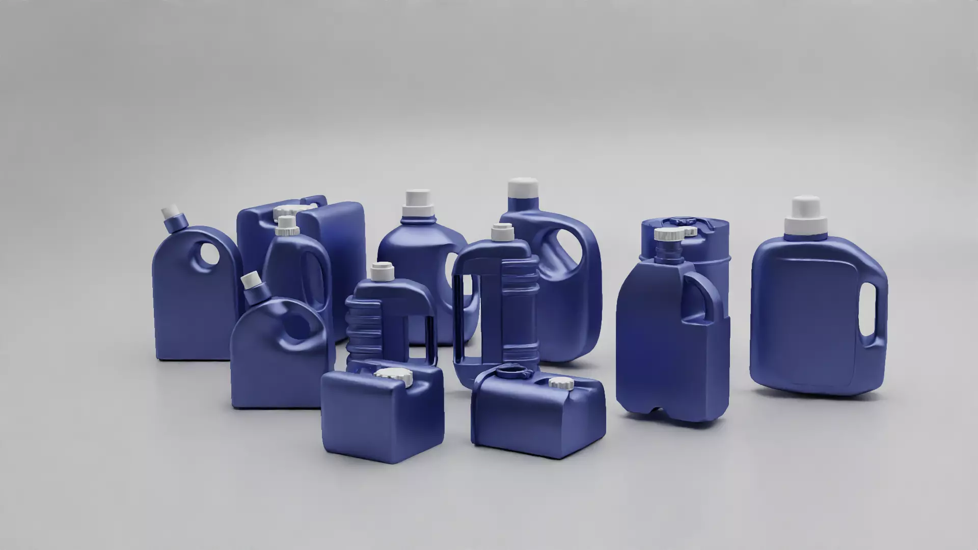 This is a professionally modeled collection of plastic detergent and chemical bottles, ideal for product visualization, packaging design, and commercial rendering. The pack contains a variety of bottle shapes with detailed caps and handles, all optimized for performance in real-time engines as well as offline renders.