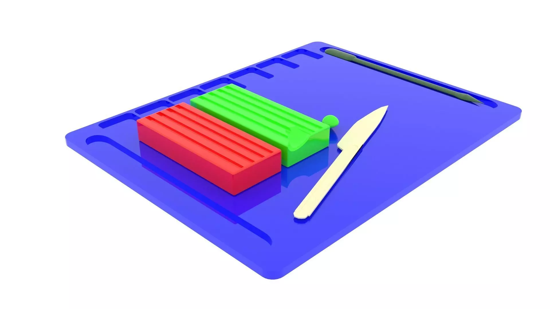 The model has material settings that define how surfaces look (color, shine, transparency, etc.).