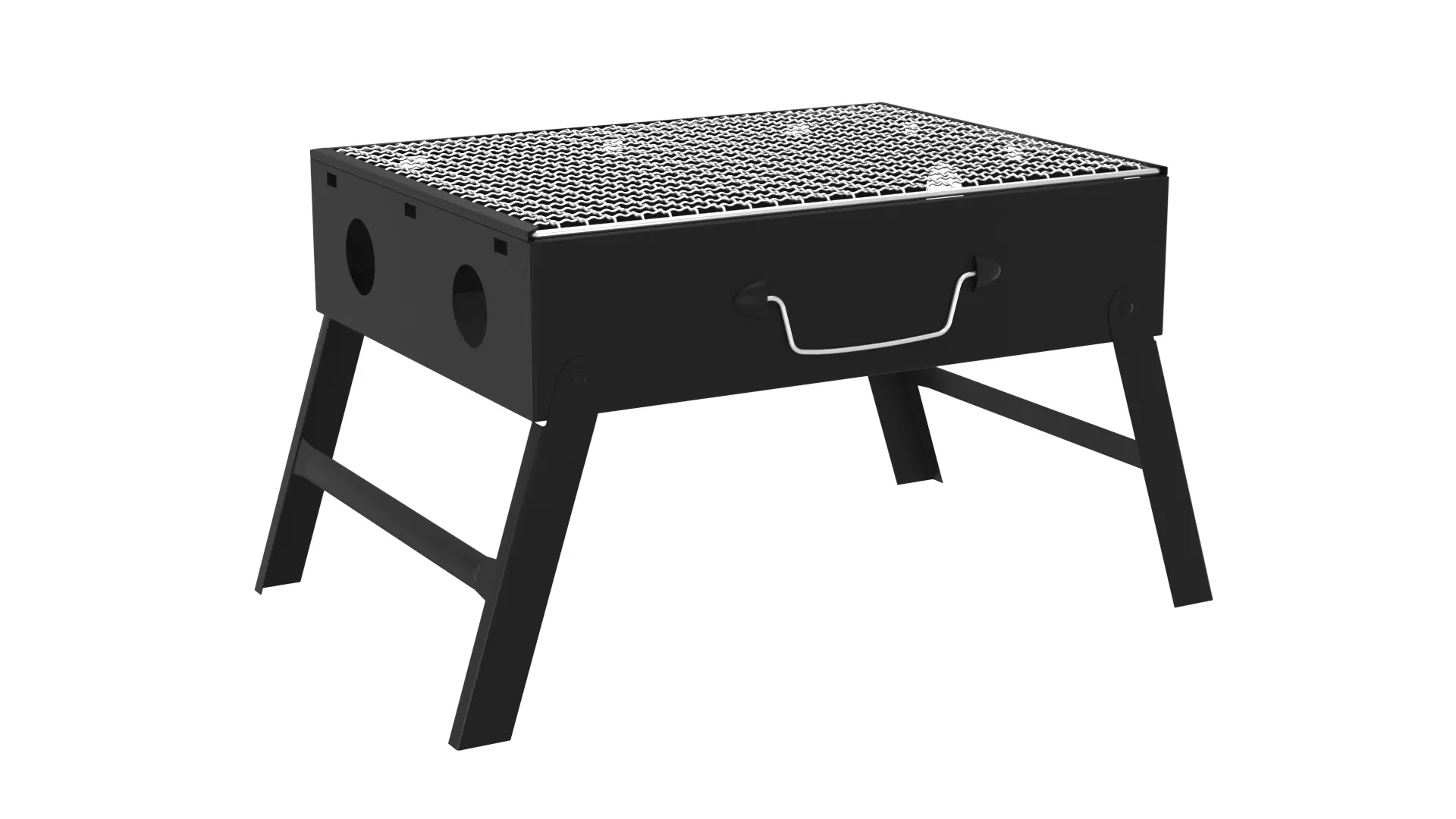 Portable BBQ Grill 3D Model – Folding Charcoal Barbecue Stove.