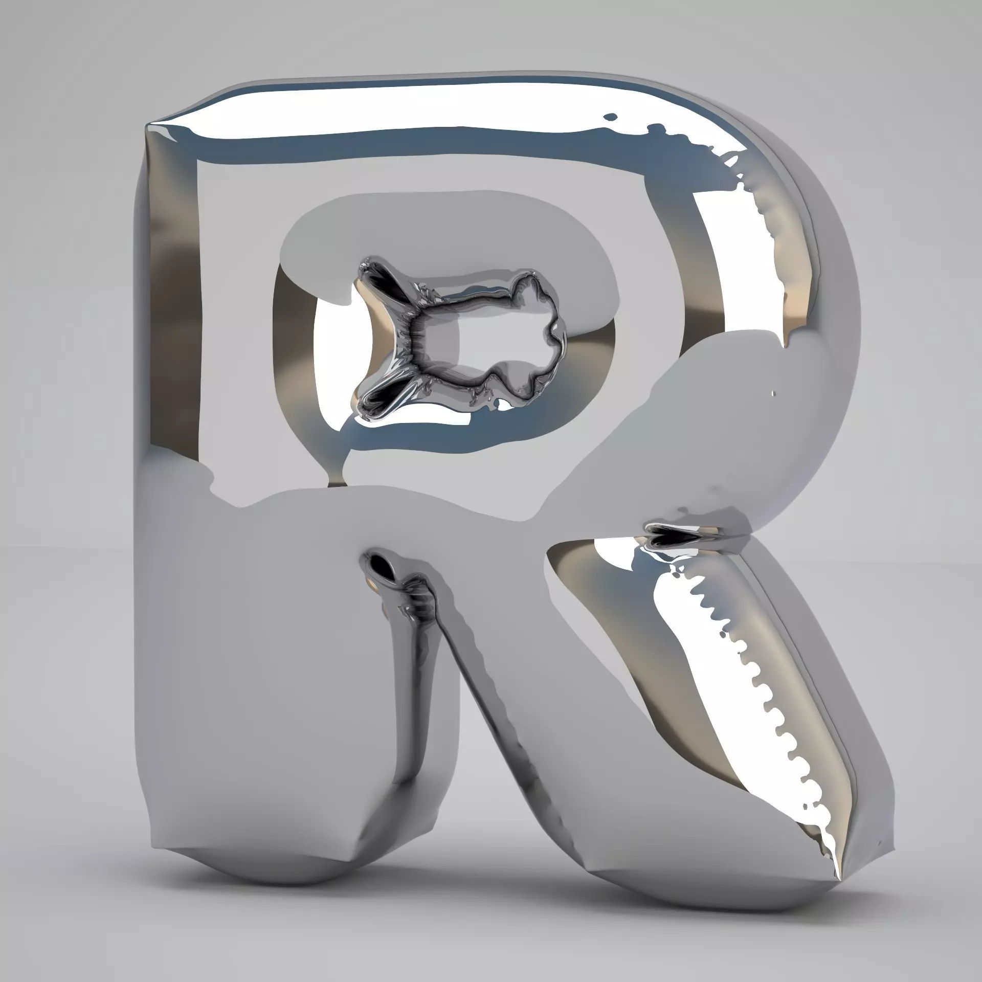 Realistic 3D Model OF Balloon R Alphabet Silver