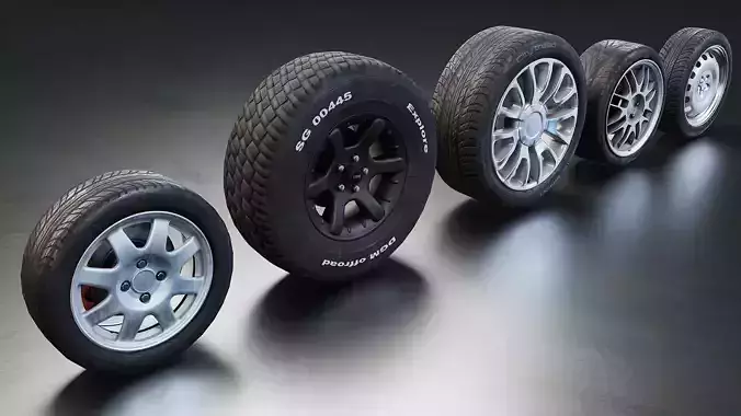Realistic Car Tire Set Low-poly 3D model