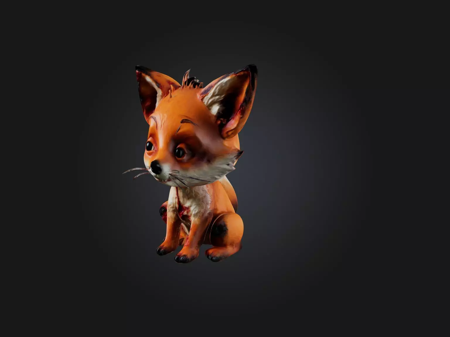 wounded fox cub, 3D fox cub model, injured fox cub, realistic fox cub, young fox, fox injuries, 3D animal