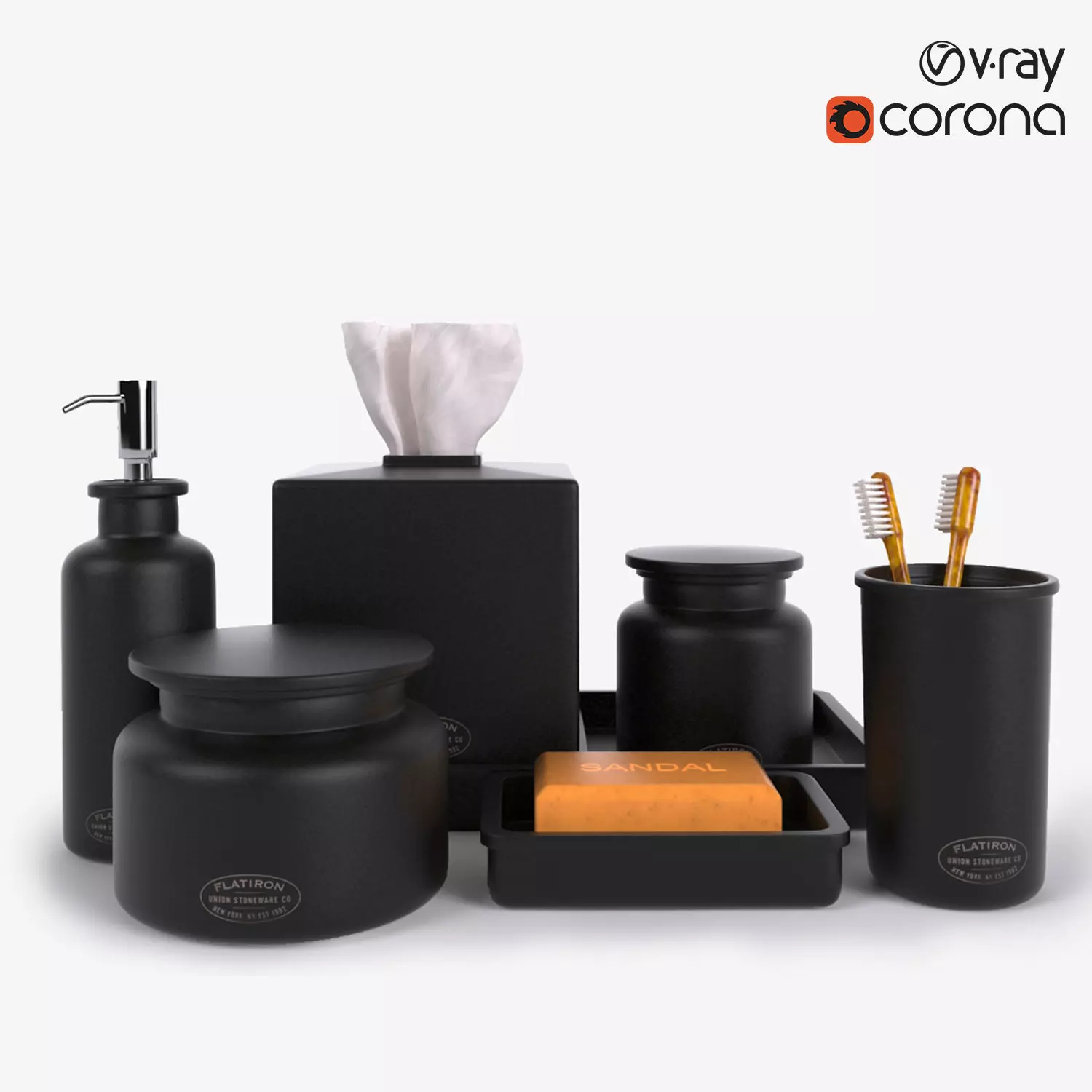 This is a model of the Restoration Hardware Flatiron Union Stoneware Bath Accessories Charcoal.
