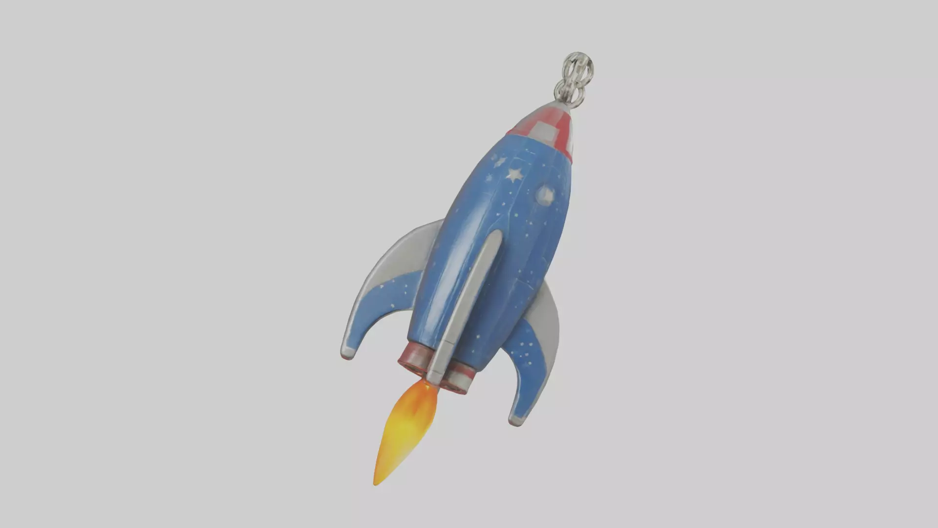 A detailed 3D model of a rocket ship keychain, perfect for 3D printing, game assets, or personal projects. Available file formats: FBX, OBJ, STL, GLB, USDZ, BLEND.