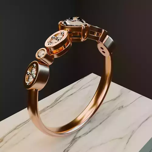 The ring features a polished rose gold band adorned with a symmetrical arrangement of oval and round gemstones, accurately placed in realistic prong and bezel settings. Crafted to mimic high-end fine jewelry, this model is optimized for close-up renders and supports both real-time and offline rendering pipelines.