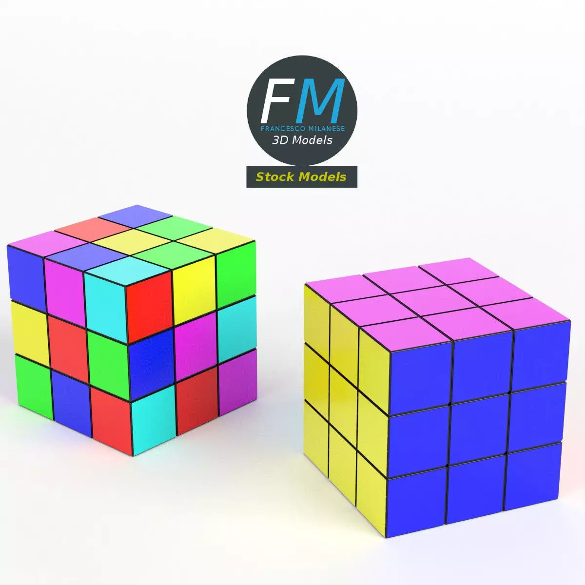 Rubik cubes 3D Model. 2 individual objects, sharing the same non overlapping UV Layout map, Material and PBR Textures set. Production-ready 3D Model, with PBR materials, textures, non overlapping UV Layout map provided in the package.
