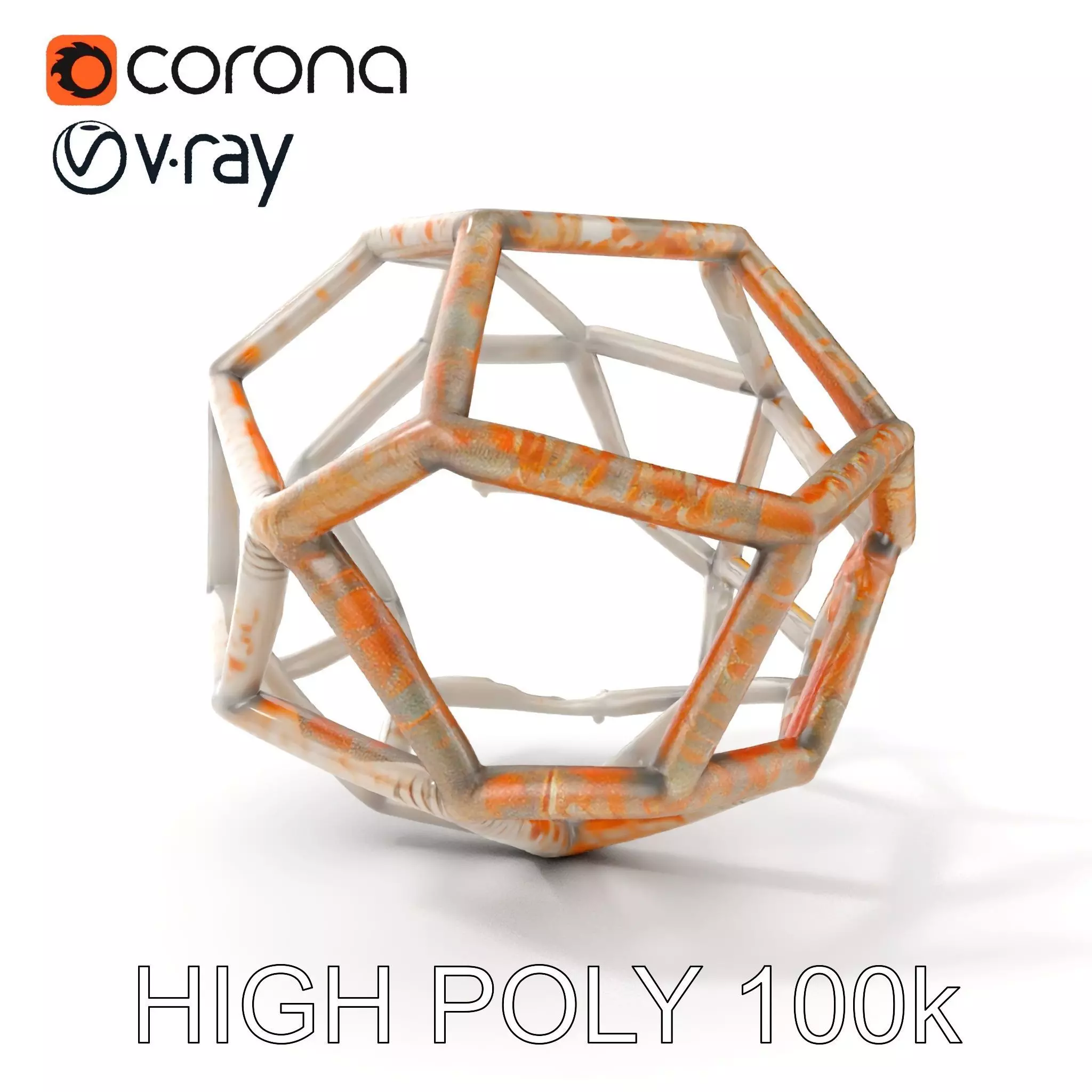 This model is a rustic wireframe dodecahedron, perfect for use in architectural visualization, environment design, and abstract artistic projects. Available in three levels of detail, it suits various production needs, from mobile applications to high-end rendering.