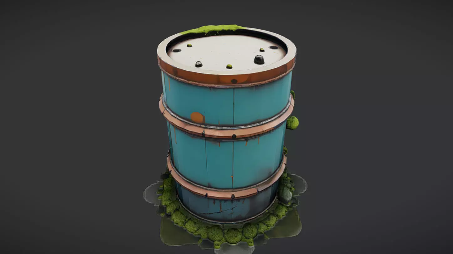 rusty industrial barrel with moss