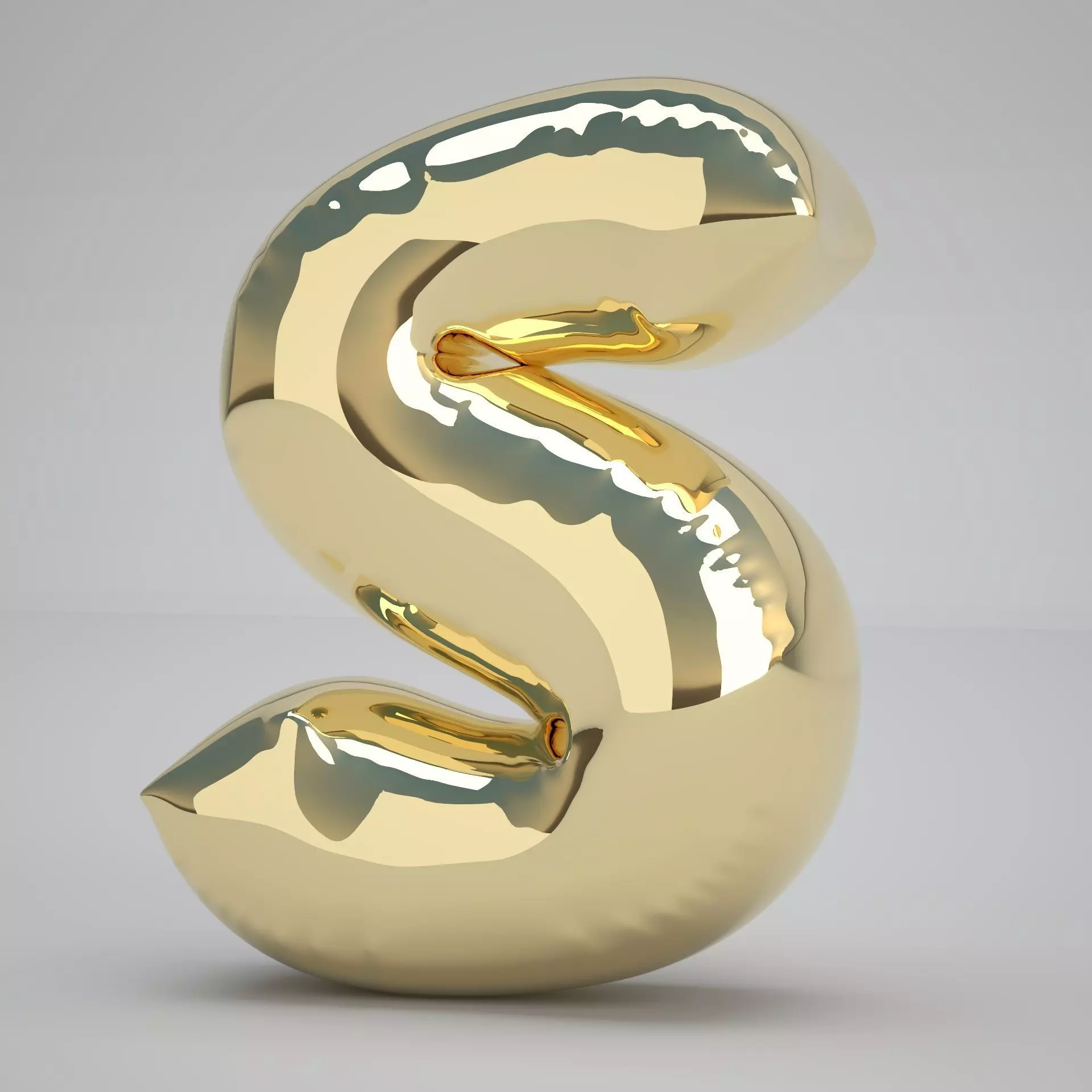 Realistic 3D Model OF Balloon S Alphabet Gold