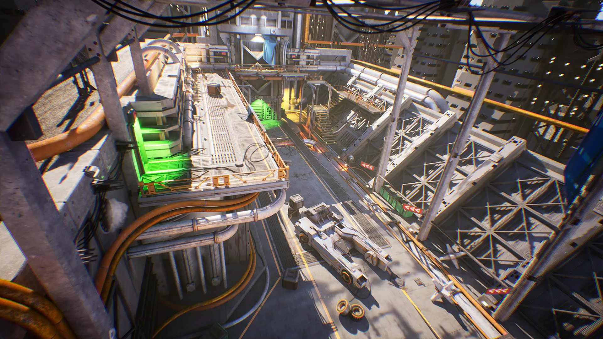 AAA game quality Custom materials for visual variety Modular and organic meshes and propsPBR materials and texturesSet of hard surface decals to create more visual variety on surfacesSet of designed elements including architecture and prop piecesGraphic and dirt decalsCar asset as an object of interestFully finished Hangar map