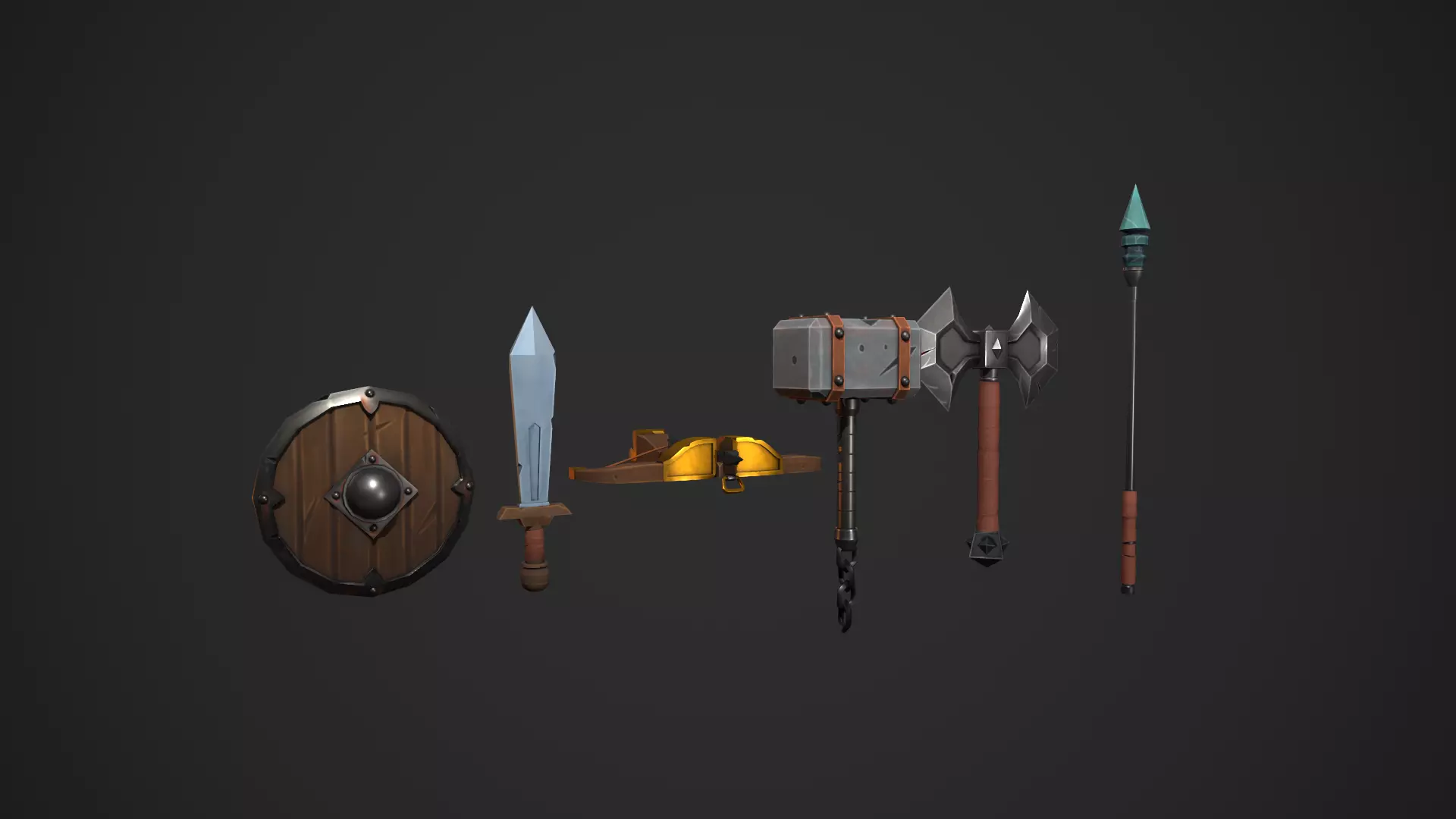 Armas Estilizadas para GameReady. Modelado en Blender, texturizado en Susbtance Painter Por la compra de este pack obtienes: