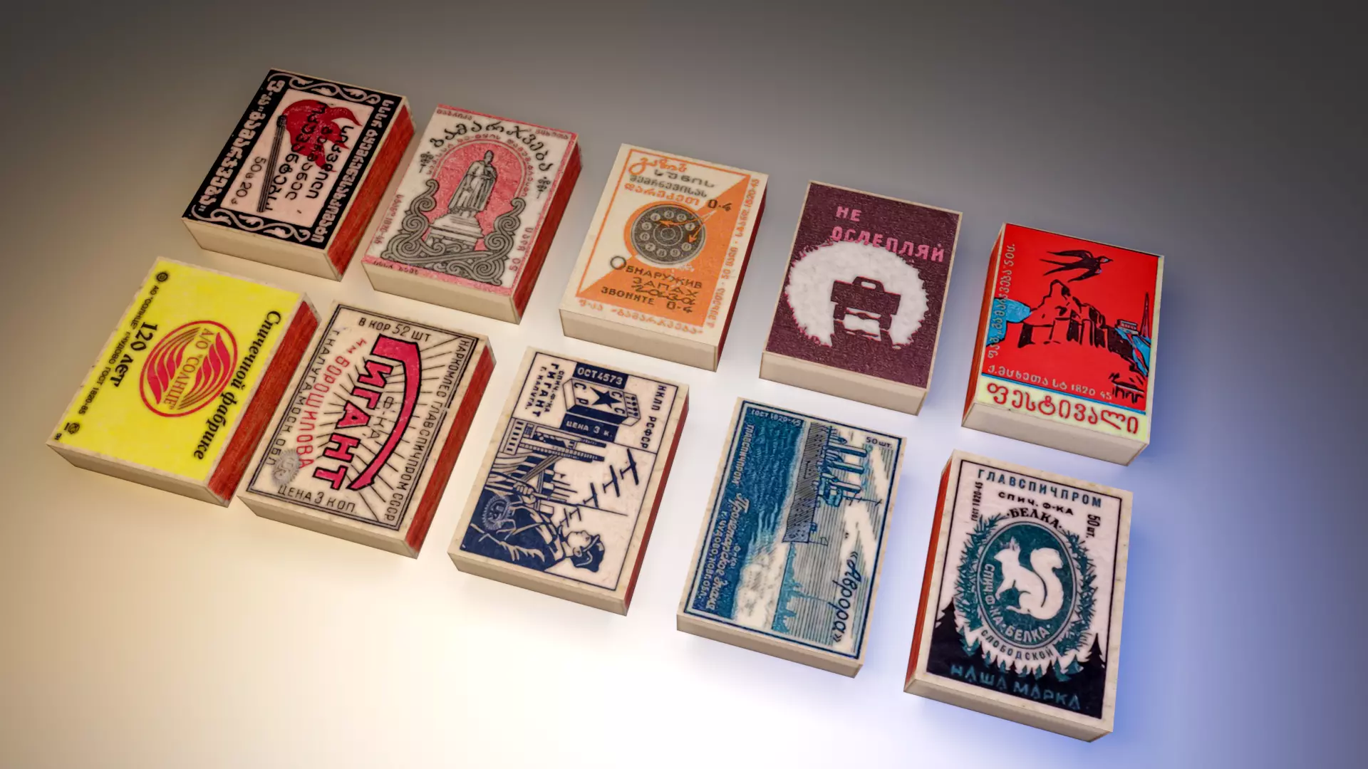 A set of matchboxes from the USSR. There are boxes from different years from 1940 to 1990.Textures 2048x2048There is a normal map, Ambient occlusion, specular map.These models can be used to create a game. For a commercial. Or for your render. The work is of high quality and it is very rare to find such boxes.