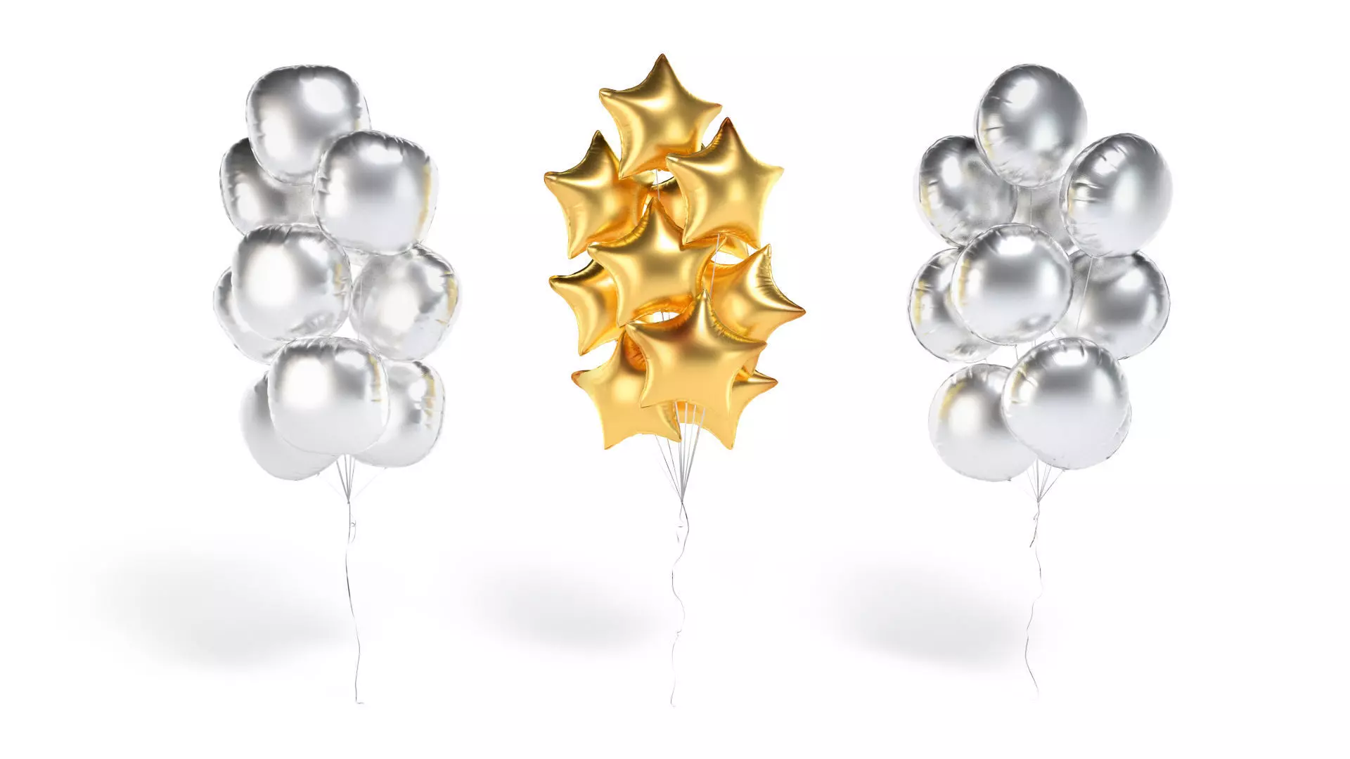 Silver Balloon Bouquet 3 Type - helium gold balls bunch set 3D model