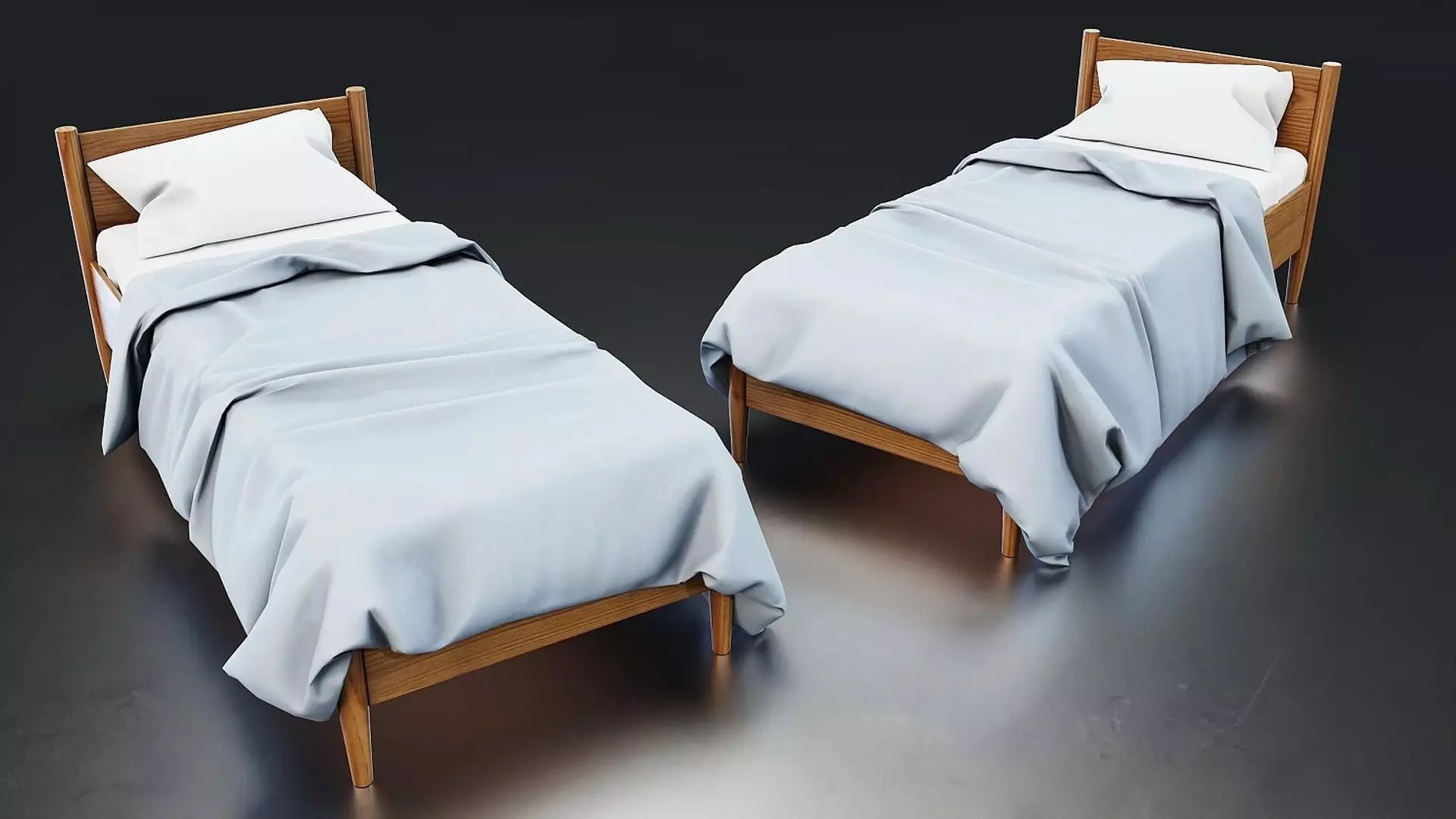 Single Wooden Bed with Bedding Set 3D Model Low-poly 3D model