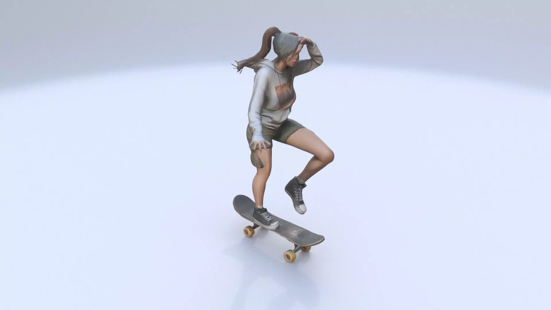 3D model of Skateboarding.Fully ready to render. Contains one 2k diffuse textures. It is available as part of a wider collection on the same theme. Available as Fbx, Obj, STL, Alembic, and 3dsmax. AI generated