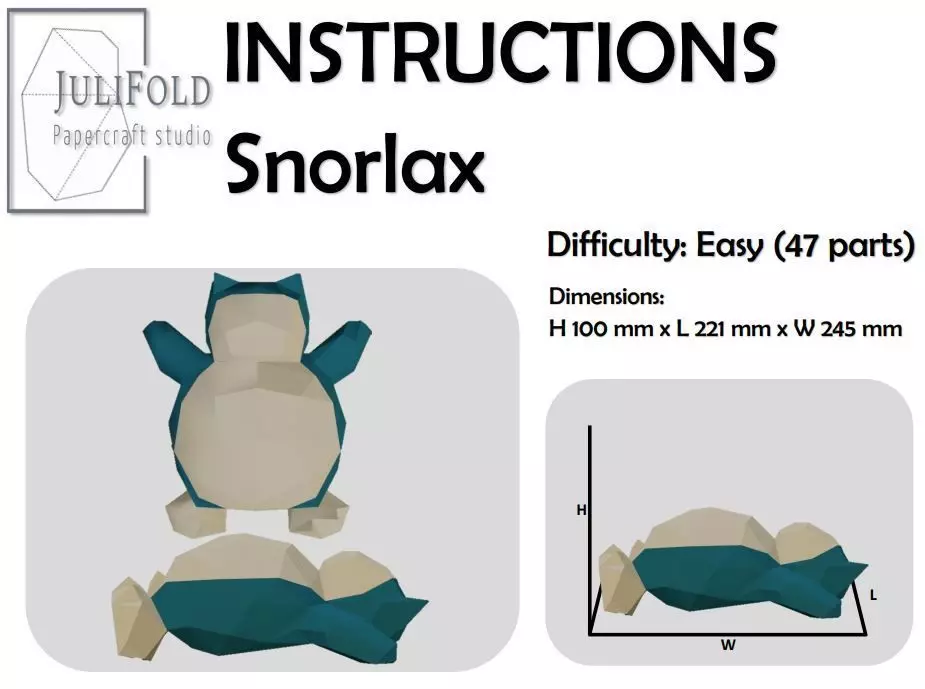 Snorlax Instructions (PDF file of the Instructions of the Model. I highly recommend you read it).