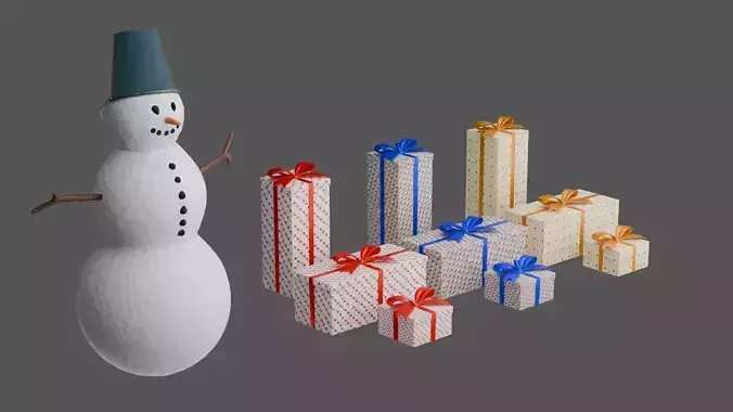 This Snowman and Gifts Set is a festive 3D asset designed to bring warmth and holiday spirit to any scene. The snowman features detailed snowy surfaces, coal eyes, a carrot nose, wooden stick arms, and classic button elements, giving him a cheerful and welcoming look. The set also includes beautifully modeled gift boxes with clean geometry and customizable materials, allowing you to adjust colors, patterns, and ribbons to match your project. Perfect for winter renders, animations, greeting cards, game environments, or seasonal promotional visuals. With clean topology and easy customization, this set integrates seamlessly into any holiday-themed scene or creative project.
