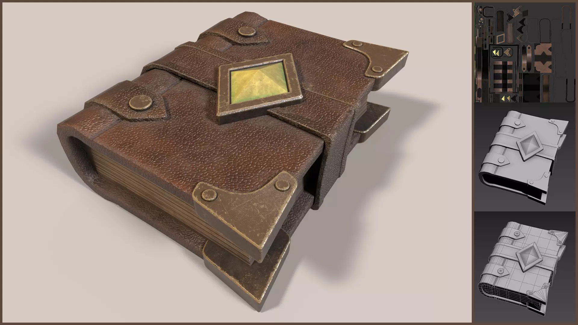 Low-poly game-ready Spellbook with Magic Crystal model made in 3ds Max 2023 and textured in Substance Painter.