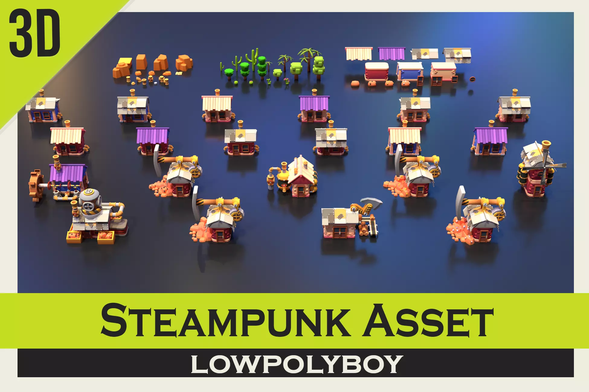 Steampunk Modular Asset Low-poly 3D model