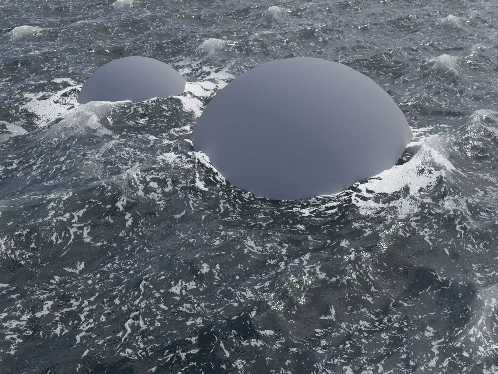 This is a V-Ray Ocean shader that responds to objects or coast in the scene, placing foam where it would naturally occur. Replacing the spheres with coasts, rocks or ships for example, this scene could be utilized to create a believable stormy ocean scene.