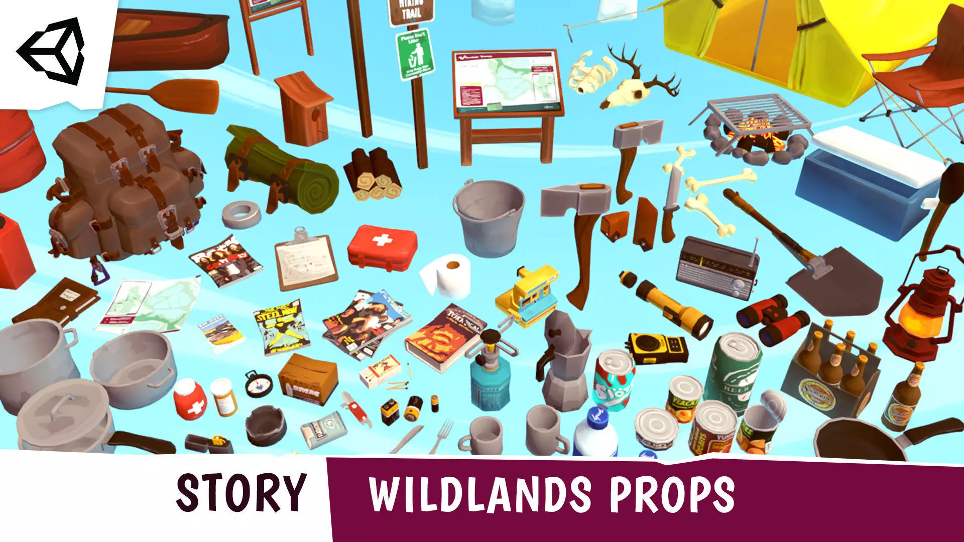 This pack contains 97 unique assets to create your own adventure in the wildlands! Populate your environment with a variety of carefully handpainted props to tell your own story.