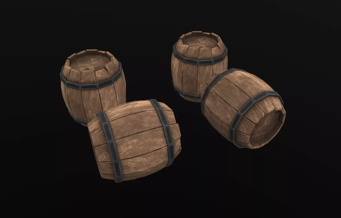 • Hi guys! Today I want to show you a barrel model. Optimized and stylized for realism, perfect for any game. A barrel is a large round wooden vessel in which liquids, products, etc. can be stored and transported. A barrel is the amount of liquid, food, etc. that is placed in such a vessel. A barrel is a vessel of a cylindrical or other shape that can be rolled (as opposed to a tub) from one place to another and put on the ends without additional supports, designed for transportation and storage of liquid and other substances. The barrels are of various shapes, but usually the base, top and section of the central part of the barrel are circular in shape, while the diameter of the central part may be slightly larger than the diameters of the base and top.Previously, barrels were made of rivets (special boards forming the side surface: the bottom and the lid were inserted into the chimes chosen by the tornado), pulled together with a wooden (most often cheromukhov) or metal hoop.