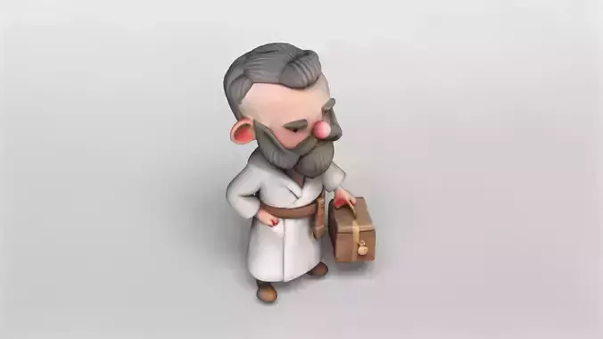 This highly detailed stylized 3D model features a charming bearded craftsman character, designed with a unique cartoonish aesthetic. The character is dressed in a simple yet authentic robe, complete with a brown belt, and holds a wooden toolbox, emphasizing his role as a skilled artisan. The model's expressive facial features and neatly groomed beard add personality and depth, making it perfect for animation, games, or digital storytelling.The model is fully textured, with all materials included to ensure a seamless integration into your projects. The textures highlight the soft fabric of the robe, the natural wood grain of the toolbox, and the subtle skin tones, enhancing the overall visual appeal. This attention to detail makes the character visually engaging and ready for close-up renders or interactive applications.Available for download in the versatile GMB format, this model is optimized for easy use in various 3D software environments. Additionally, it is provided in FBX format, allowing for broad compatibility with popular 3D modeling and animation tools. Both formats include the complete texture set, ensuring that the model looks exactly as intended without additional setup.Whether you are developing a game, creating an animated short, or building a virtual environment, this stylized craftsman character offers a perfect blend of simplicity and charm. Its clean design and high-quality textures make it an excellent asset for a wide range of creative projects.