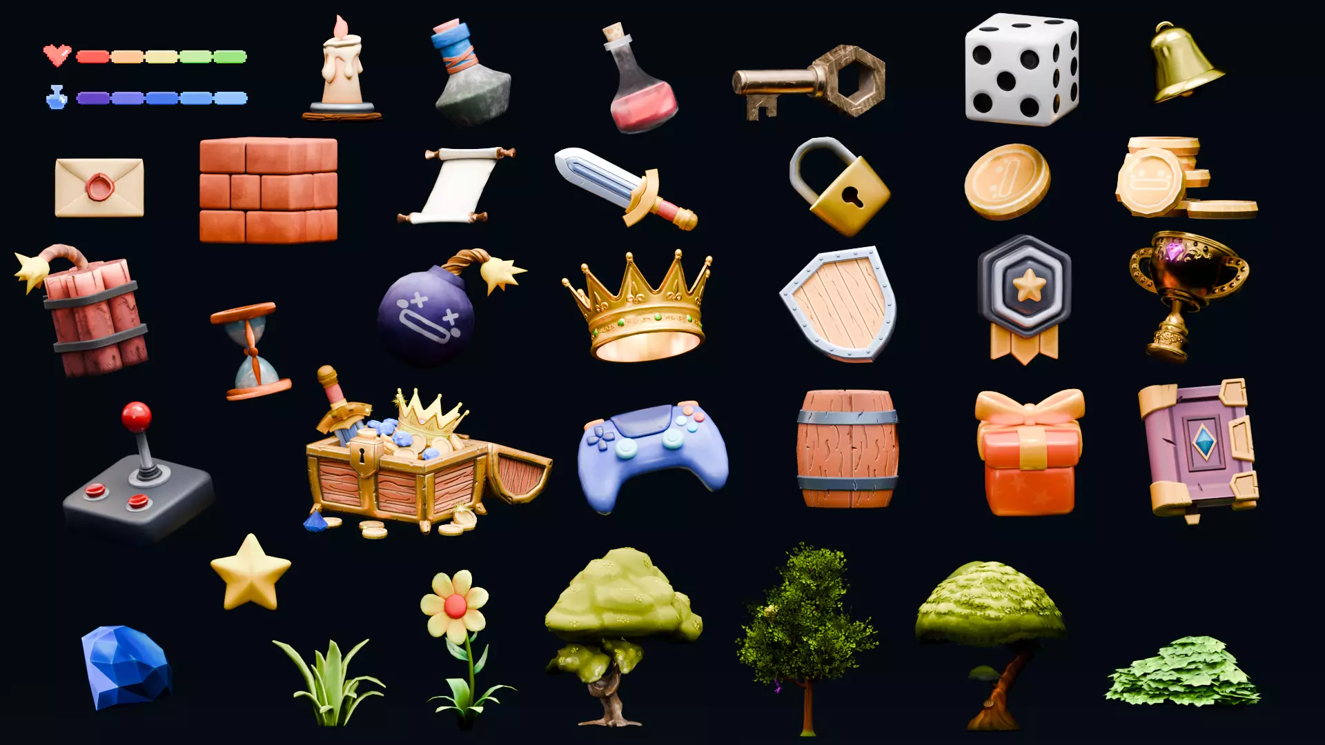 Stylized Game Items - Bundle Edition Low-poly 3D model