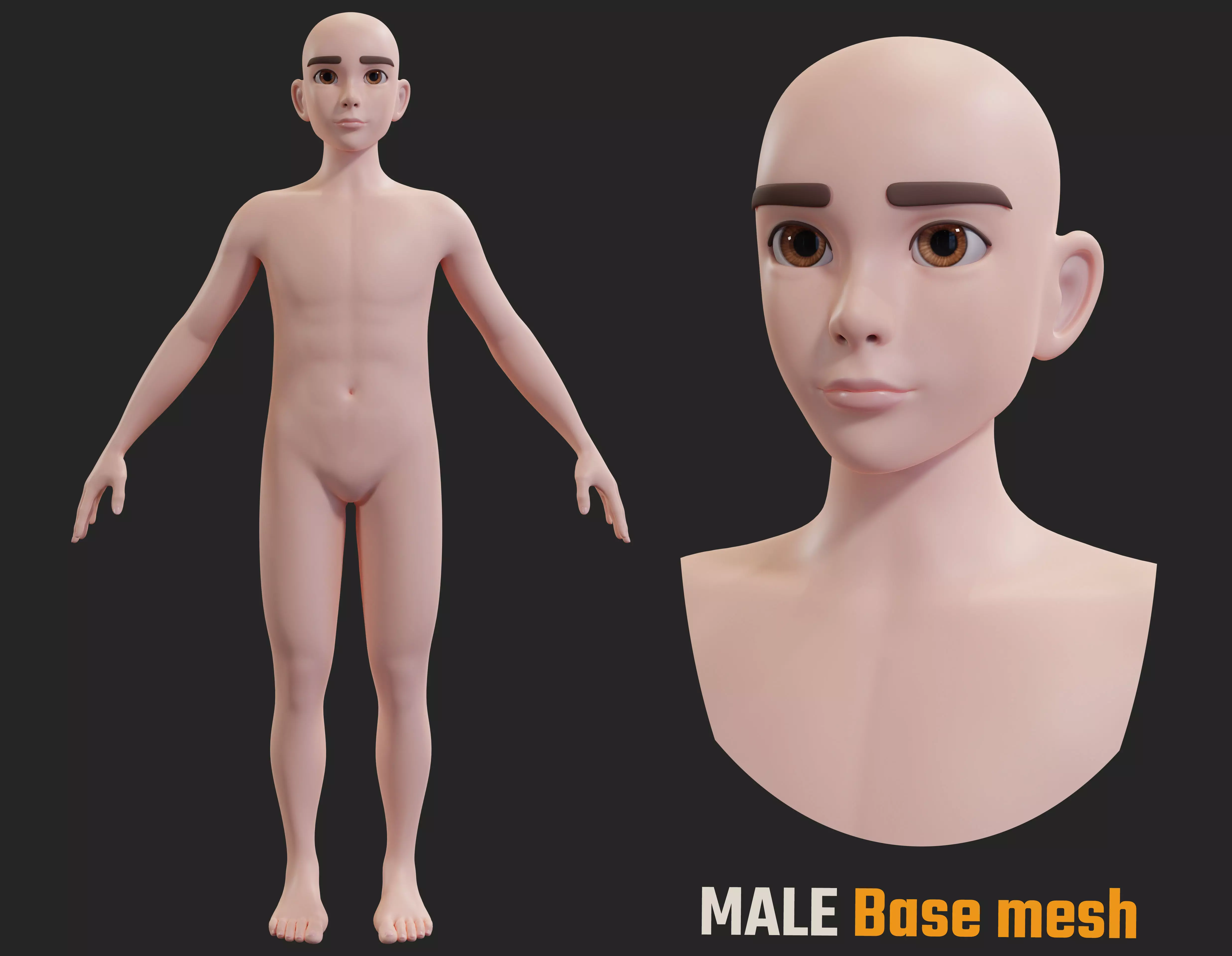 Stylized Character male Base Mesh 3D model Low-poly 3D model