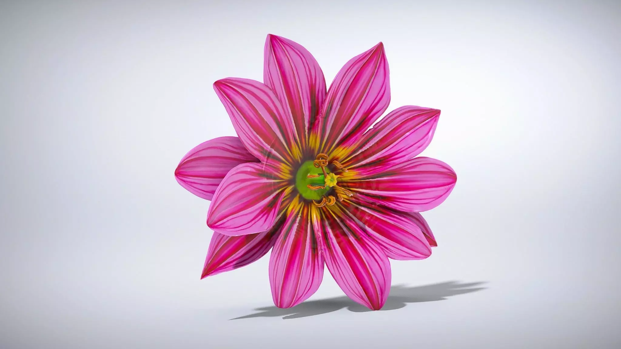 A vibrant, stylized pink lily-like flower head with bold striped petals and a detailed center, designed for real-time use in games, animation, and VR. The clean shapes and saturated colors make it perfect for fantasy forests, gardens, dioramas, and cartoon environments, while still holding up for close-up shots. Use it as a hero bloom, bouquet element, or scatter dressing for flora sets across Unity/Unreal/Blender pipelines.