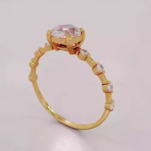 Yellow Gold Semi Mount Oval Natural Diamond Ring 3D model